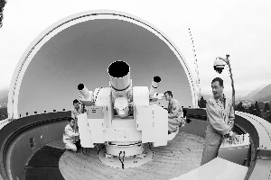 昨日,西昌衛(wèi)星發(fā)射中心指控中心觀測室的技術(shù)人員正在對(duì)負(fù)責(zé)跟蹤測量衛(wèi)星起飛姿態(tài)的廣電經(jīng)緯儀進(jìn)行檢測。 秦憲安 攝