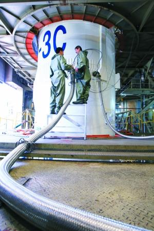 昨日,在西昌衛(wèi)星發(fā)射中心,工作人員對(duì)運(yùn)載火箭加注燃料,“嫦娥二號(hào)”發(fā)射進(jìn)入倒計(jì)時(shí)。張雷 攝