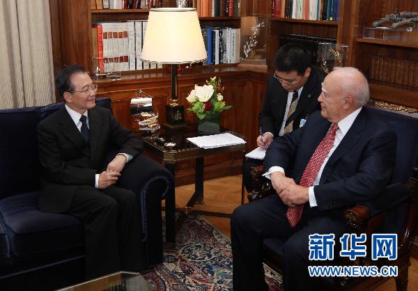 中國國務院總理溫家寶3日在雅典會見希臘總統(tǒng)帕普利亞斯。