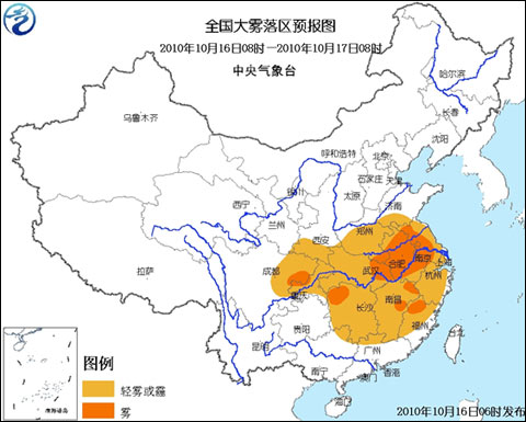 中新網(wǎng)10月16日電 中央氣象臺今晨6時繼續(xù)發(fā)布大霧藍色預警: