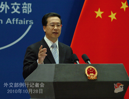 中新網(wǎng)10月28日電 據(jù)外交部網(wǎng)站消息,2010年10月28日,中國外交部發(fā)言人馬朝旭主持例行記者會(huì)。答問如下。