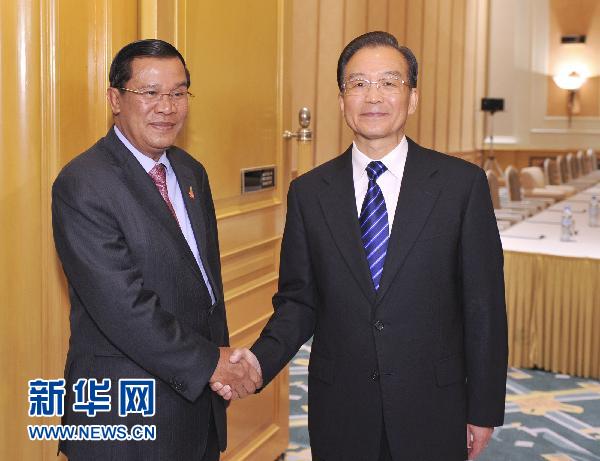溫家寶說,中柬兩國關系正進一步發(fā)展。2006年我訪問貴國時,兩國決定建立全面合作伙伴關系。這把兩國關系推進到一個新階段。中柬友誼經歷了時間的考驗,在關鍵時期和在重大問題上,我們得到了貴國的寶貴支持。在這方面,首相表現(xiàn)出了政治家的堅定意志。我很愿意就中柬雙邊關系和雙方共同關心的問題和首相交換意見。
