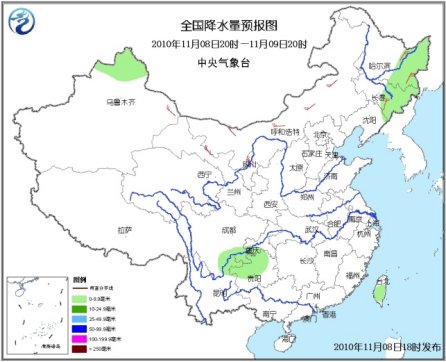 10日20時(shí)至11日20時(shí),內(nèi)蒙古中東部、黑龍江南部、吉林、遼寧中北部等地有小到中雪或雨夾雪;河北北部、山西北部、四川東部和南部、重慶、貴州大部、云南中北部、湖北西部、湖南西北部及海南等地有小到中雨。西北地區(qū)中東部、內(nèi)蒙古大部、華北、東北、江淮、黃淮等地有4~6級(jí)風(fēng),局地陣風(fēng)7~8級(jí)。南海東北部和中部海域?qū)⒂?~7級(jí)、陣風(fēng)8級(jí)的東北風(fēng)。