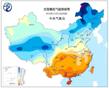 在兩股冷空氣輪番“轟炸”后,預(yù)計15日凌晨,西北地區(qū)、華北、東北地區(qū)最低氣溫都將降至0℃以下,內(nèi)蒙古中東部、華北北部、東北地區(qū)大部、青藏高原大部將降至零下8℃以下,內(nèi)蒙古東北部將達(dá)零下20℃以下;黃淮、江淮大部最低氣溫在1~4℃,西南地區(qū)東部、江南大部在5~10℃,華南大部12~16℃,局地18~20℃。