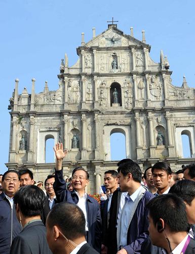 14日,溫家寶在澳門特別行政區(qū)行政長官崔世安的陪同下,先后參觀澳門大炮臺、澳門博物館、大三巴牌坊,考察了澳門生產(chǎn)力暨科技轉(zhuǎn)移中心、澳門工聯(lián)北區(qū)綜合服務(wù)中心、仁伯爵綜合醫(yī)院、澳門大學(xué)等機構(gòu),看望澳門廣大市民,和大家真情互動,深切了解澳門歷史和經(jīng)濟、社會發(fā)展情況。他還走訪市民家庭,了解澳門普通居民的生活現(xiàn)狀。