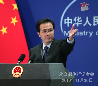 2010年11月30日,外交部發(fā)言人洪磊主持例行記者會。
