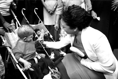 今年3月隨習(xí)近平訪問俄羅斯和非洲時,彭麗媛曾前去俄羅斯的寄宿學(xué)校、剛果的遺棄兒童收養(yǎng)中心看望孩子們,還抱起孤兒聊天。昨天,她蹲下身和坐在輪椅上的兒童手貼手交心。對外經(jīng)濟貿(mào)易大學(xué)國際關(guān)系學(xué)院外交學(xué)系主任檀有志認(rèn)為,彭麗媛作為世界衛(wèi)生組織“抗擊結(jié)核病和艾滋病親善大使”,這些活動都很適合她,能起到加深中外友誼的橋梁作用。