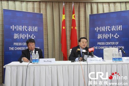 中國(guó)外交部副部長(zhǎng)程國(guó)平(右)召開(kāi)新聞發(fā)布會(huì)