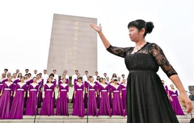 為紀(jì)念全民族抗戰(zhàn)爆發(fā)77周年,昨天下午六點(diǎn),由北京市委宣傳部主辦,豐臺(tái)區(qū)委、豐臺(tái)區(qū)政府承辦的“勿忘國(guó)恥,圓夢(mèng)中華”首都各界群眾歌詠活動(dòng)在中國(guó)人民抗日戰(zhàn)爭(zhēng)紀(jì)念雕塑園中心廣場(chǎng)內(nèi)舉行。 新京報(bào)記者 李禹潼 薛珺 攝影報(bào)道
