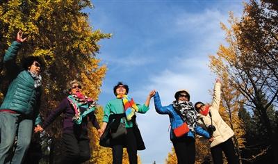 11月10日,地壇公園,游客在藍(lán)天下合影。 拍者 王彥高 攝