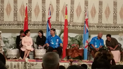姆拜尼馬拉馬總理為我們舉行了富有濃郁民族特色的傳統(tǒng)歡迎儀式,讓我們感受到你們對(duì)中國(guó)人民的深情厚誼。中斐兩國(guó)人民友誼跨越千山萬(wàn)水。我們期待同斐濟(jì)朋友們一道努力,攜手開(kāi)創(chuàng)兩國(guó)關(guān)系更加美好的明天。
