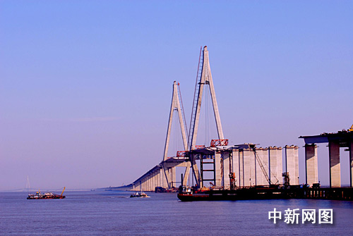 中新網(wǎng)6月26日電 杭州灣跨海大橋?qū)⒂?6日舉行全線貫通儀式,大橋全長(zhǎng)36公里,建成后將縮短寧波至上海間的陸路距離120公里,是國(guó)道主干線——同三線跨越杭州灣的便捷通道。