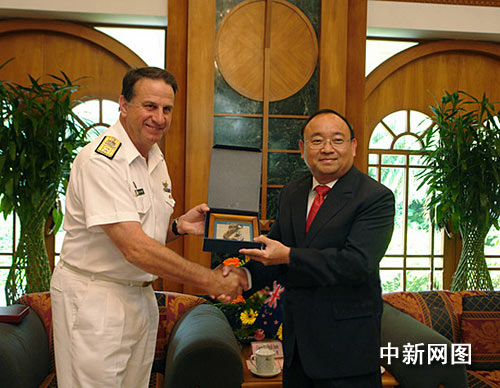 中新網(wǎng)湛江10月19日電(梁盛 鄧麗娜)新西蘭海軍“特卡哈” (Te Kaha)號導彈護衛(wèi)艦十九日上午抵達中國海軍湛江軍港進行友好訪問。在新西蘭聯(lián)合部隊司令部海上部隊司令大衛(wèi)•安森準將的率領下,“特卡哈”號護衛(wèi)艦艦長安德魯•格蘭特中校等主要軍官一同拜會了湛江市市長陳耀光。新西蘭駐廣州總領事楊安廉也出席了這次見面會。