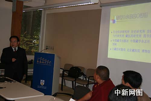 與加拿大的大學(xué)和研究機(jī)構(gòu)進(jìn)行學(xué)術(shù)交流是代表團(tuán)此行的主要目的。今天上午,代表團(tuán)來到位于溫哥華的不列顛哥倫比亞大學(xué),與該校亞洲研究院從事藏學(xué)研究的教授和博士、碩士研究生進(jìn)行學(xué)術(shù)座談。代表團(tuán)成員逐一介紹了所在機(jī)構(gòu)的情況以及各自研究的領(lǐng)域。