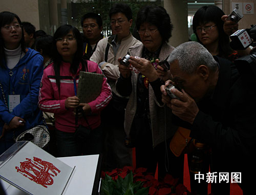 中新社武漢十一月八日電(記者 艾啟平)八日十一時,作為第八屆中國藝術節(jié)重要內容之一的《國風歸來——第二屆全國剪紙藝術展》在湖北省藝術館開展。中共中央總書記、中國國家主席胡錦濤的剪紙作品《回娘家》在該館一樓大廳最顯眼處展出,正式與廣大民眾見面。