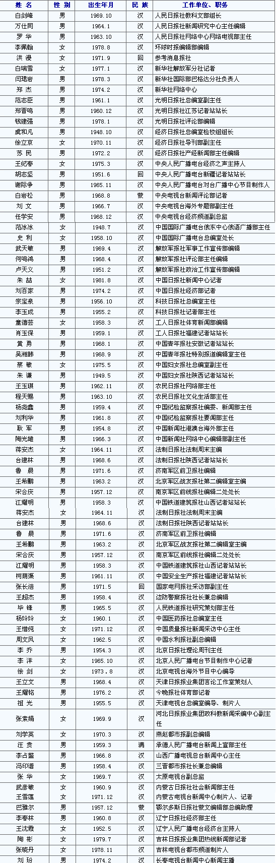 2007年全國優(yōu)秀新聞工作者名錄(上)