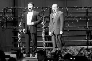 除了李叔同,李嵐清尊敬的中國音樂家還有小提琴家馬思聰和二胡演奏家華彥鈞,《思鄉(xiāng)曲》和《二泉映月》是兩人各自的代表作。在講座現(xiàn)場,李嵐清還與男中音歌唱家張峰一同深情演唱了由劉半農(nóng)作詞、趙元任作曲的《教我如何不想他》!坝腥税岩魳房醋骷记,而不是審美的樂趣,所以他們聽不懂。其實,聽不懂是因為他們聽少了,現(xiàn)在很多演奏家都用通俗的方式來演繹經(jīng)典———‘鋼琴王子’克萊德曼的《致愛麗絲》其實是貝多芬的作品,S.H.E的《不想長大》用了莫扎特《第四十交響曲》中的旋律。我不是說古典作品不能被借用,但是對經(jīng)典音樂的惡搞是極不妥當?shù)摹V袊魳芳乙矛F(xiàn)代人聽得懂的語言,用傳統(tǒng)的中國文化來寫音樂,譚盾、葉小綱做的就是這樣的事情……不能隨意讓經(jīng)典音樂PK通俗音樂。”