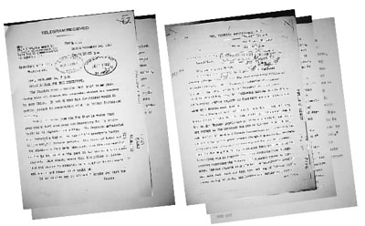 第一件檔案是1937年12月14日柏林時間下午3點,美國駐德國大使陶德(Dodd)經(jīng)國務(wù)卿赫爾(Hull)給羅斯?偨y(tǒng)的密電(美國外交關(guān)系檔案RG59—793.94/11631)。