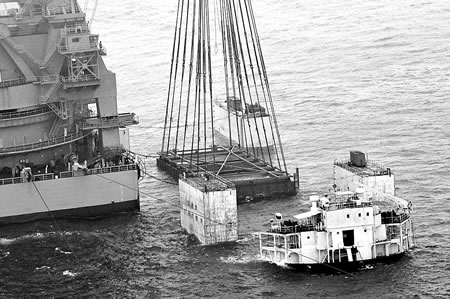 “南海一號(hào)”打撈總指揮吳建成工程師介紹,在這之后的步驟就是將“南海一號(hào)”鋼鉆井放在半潛駁船上,把鋼鉆井提出水面1.5米左右,同時(shí)緩緩移動(dòng)“華天龍”打撈船,把鋼鉆井放到“華天龍”打撈船上。這樣,半潛駁船“1601”就會(huì)排水并慢慢起浮,并把“南海一號(hào)”鋼鉆井牢牢穩(wěn)定在“1601”駁船上。