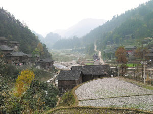 這個(gè)村幾乎所有人都還住著木頭吊腳樓。他們從山上砍取杉木,涂上桐油,搭建起這種傳統(tǒng)房屋。即使到2005年,村里還有6戶人家屋頂蓋的不是瓦片,而是長滿青苔的杉樹皮。這些因風(fēng)吹雨打而變成黑色的吊腳樓里,總共只有60臺彩電,16部電話,20部手機(jī),5臺洗衣機(jī)。