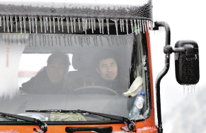昨天上午,記者再次來到京珠北高寒路段,路面上結(jié)了白色的冰層,在33公里處西山大橋路面,冰層厚達(dá)兩厘米以上,車輛只能以極其緩慢的速度通行。此時(shí)車上的溫度計(jì)顯示車外氣溫是零下3℃。在云巖路段,記者看到積雪最厚處約有8厘米左右。