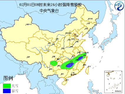 受冷暖空氣的共同影響,預(yù)計(jì)今天白天到夜間,湖南大部、貴州東南部、湖北東南部、安徽南部、江蘇西南部、浙江北部、江西北部以及四川東南部、云南東北部等地有中到大雪,其中,湖南中南部、安徽南部、江西北部、浙江西北部等地的局地有暴雪。