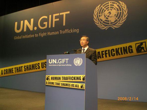 他指出,中國政府高度重視打擊人口販運國際合作。他說,中國是《聯(lián)合國打擊跨國有組織犯罪公約》締約國,切實履行公約義務(wù),并積極參與聯(lián)合國框架下打擊人口販運國際合作!堵(lián)合國機構(gòu)間湄公河次區(qū)域合作反對拐賣人口項目》是區(qū)域合作解決國際人口販運犯罪問題的典范。2004年,中國、越南、泰國、緬甸、老撾、柬埔寨六國政府簽署了《湄公河次區(qū)域合作反對拐賣人口諒解備忘錄》。三年來,六國政府信守承諾,大力加強預(yù)防拐賣、保護救助受害人工作,嚴(yán)厲打擊各種拐賣犯罪行為,使得眾多拐賣犯罪受害人和潛在受害者從中受益。2007年底,湄公河次區(qū)域反拐第二屆部長級磋商會在中國北京成功召開,會議通過第二階段《湄公河次區(qū)域反拐行動計劃》及《聯(lián)合宣言》等一系列重要指導(dǎo)性文件,對進(jìn)一步落實《諒解備忘錄》、促進(jìn)本區(qū)域合作打擊人口販運犯罪工作將產(chǎn)生深遠(yuǎn)影響。