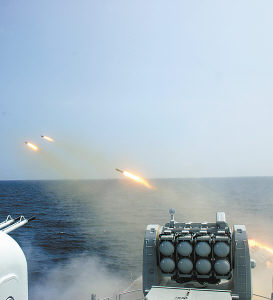 “魚雷對潛攻擊,左舷4號管,定深×米,打擊目標!薄鞍l(fā)射!”隨著艦長一連串口令,魚雷入水逐浪撲向目標。這時,其他各艦也開了火,數(shù)枚火箭彈、深水炸彈砸向目標,海面上沉悶的爆炸聲不絕于耳。不久,直升機上傳來目標被摧毀的消息。