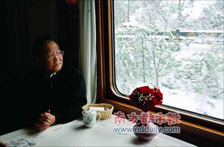 武漢當時氣溫在零下,下著小雪,溫家寶直接從機場去火車站。鐵道部臨時調(diào)派的火車還沒到位,總理只好在火車站貴賓室等待。