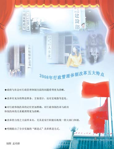 “這次改革真正啟動(dòng)了行政管理體制向提供公共服務(wù)、理順部門職責(zé)、轉(zhuǎn)變政府職能和突出法治保障4方面的轉(zhuǎn)移。”中國(guó)政法大學(xué)副校長(zhǎng)馬懷德教授說(shuō)。
