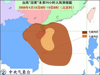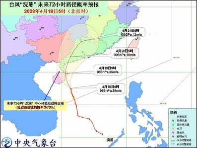 中新網(wǎng)4月18日電 據(jù)問天網(wǎng)消息,中央氣象臺(tái)今天早晨六點(diǎn)鐘發(fā)布臺(tái)風(fēng)橙色緊急警報(bào):今年第1號(hào)臺(tái)風(fēng)浣熊(NEOGURI)的中心今天早晨5點(diǎn)鐘位于海南省萬寧市東南偏南方向大約180公里的南海中部海面上,就是北緯17.5度,東經(jīng)111.4 度,中心附近最大風(fēng)力有13級(jí)(38米/秒)。