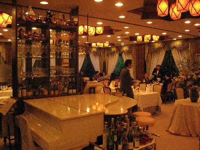 在小坂哲瑯的帶領(lǐng)下,記者來到將在6日晚間招待胡錦濤主席用餐的三樓宴會廳。大廳入口處擺放著一架白色三角鋼琴,左側(cè)的玻璃架里有各色葡萄酒供賓客享用。鋪著淡色桌布的餐桌上擺著鮮花和精致的法式餐具。在悠揚的長笛曲中,宴會廳的氛圍顯得格外寧謐優(yōu)雅。記者注意到,這里的侍應生大多較為年長,他們身穿西裝套服,彬彬有禮,風度不凡。