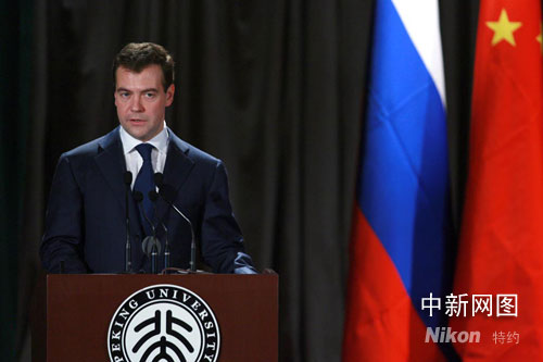 中新網(wǎng)5月24日電 俄羅斯總統(tǒng)梅德韋杰夫今天下午三時許在北京大學(xué)發(fā)表演講。