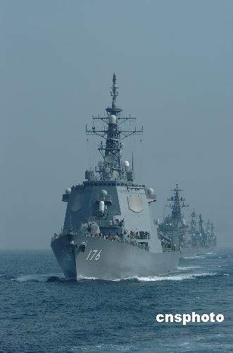 2006年10月,日本自衛(wèi)隊(duì)海上閱兵儀式在東京附近的相模灣海面舉行。據(jù)悉,此次閱兵云集了日本全國五大艦艇基地的各類主力戰(zhàn)艦。共有四十八艘艦船,五十架飛機(jī),八千多名自衛(wèi)隊(duì)官兵參加了此次大規(guī)模的海上武裝亮相。圖為參加閱兵的導(dǎo)彈護(hù)衛(wèi)艦編隊(duì)。 中新社發(fā) 王健 攝