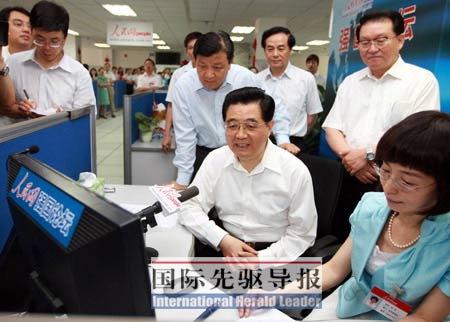 6月20日上午9點12分,人民網(wǎng)“強國論壇”率先發(fā)出預(yù)告帖:好消息!胡錦濤總書記通過強國論壇同網(wǎng)友們交流。此帖隨即被國內(nèi)各大網(wǎng)站轉(zhuǎn)載,短短幾分鐘內(nèi),“胡錦濤即將與網(wǎng)友在線交流的消息”就高高掛在各大新聞網(wǎng)站醒目位置,蜂擁而至的訪問導(dǎo)致強國論壇一度出現(xiàn)擁堵。《國際先驅(qū)導(dǎo)報》記者在一個小時內(nèi)數(shù)次嘗試登陸,均無法打開網(wǎng)頁或留言系統(tǒng)提示錯誤。