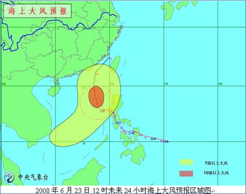 6月23日上午8時,東海南部海域、臺灣海峽、臺灣以東洋面和以南海域出現(xiàn)了5-6級西南風(fēng);南海南部海域出現(xiàn)了6-7級西南風(fēng);南海東部海域出現(xiàn)了7-9級風(fēng);菲律賓以東洋面出現(xiàn)了6-8級偏南風(fēng);臺風(fēng)“風(fēng)神”中心經(jīng)過的附近海面上出現(xiàn)了10-12級大風(fēng);日本以南洋面出現(xiàn)了6-8級西南風(fēng)。能見度不足10公里的海域有東海西部海域、南海東部海域、日本以東洋面、安達(dá)曼海、蘇門答臘以西洋面、巽他海峽、爪哇海、望加錫海峽、馬魯古海以及班達(dá)海等海域。其他海域能見度及天氣海況條件較好。