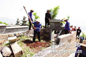 云陽(yáng)縣有關(guān)部門組織人員對(duì)活人墓進(jìn)行拆除(資料圖片) 記者 冉文 攝