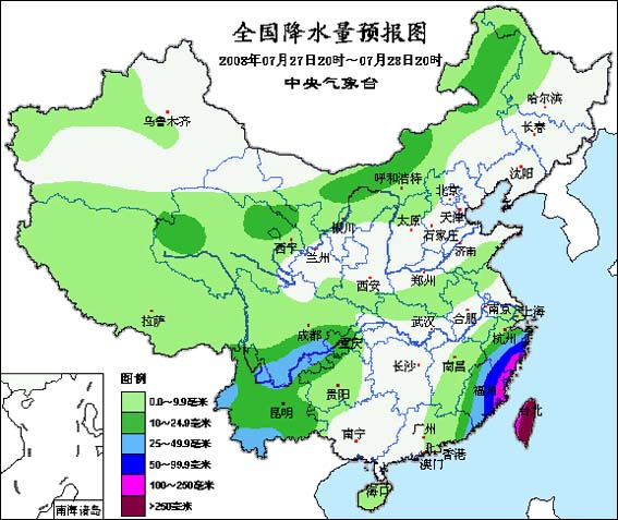 27日20時(shí)至28日20時(shí),新疆西部和天山附近地區(qū)、青藏高原大部、甘肅中部、寧夏北部、陜西南部、內(nèi)蒙古大部、黑龍江西部、華北西北部、黃淮中南部、江漢西部、西南地區(qū)大部以及江南中東部、廣東東部、海南、臺灣等地有小到中雨或雷陣雨,其中,四川東南部、云南西部和南部的部分地區(qū)有大雨;福建中東部、浙江中南部、廣東東部等地有大雨或暴雨,福建東北部、浙江東南部的部分地區(qū)有大暴雨;臺灣大部將有暴雨或大暴雨,局地有特大暴雨,上述部分地區(qū)并將伴有短時(shí)雷雨大風(fēng)或冰雹等強(qiáng)對流天氣。內(nèi)蒙古中東部、東北大部有4~5級偏北或偏南風(fēng)。東海南部海面、臺灣以東洋面、臺灣海峽、巴士海峽、巴林塘海峽、南海東北部、臺灣、福建沿海、浙江南部沿海將有8-11級大風(fēng),“鳳凰”中心經(jīng)過的附近海面風(fēng)力可達(dá)12-14級。