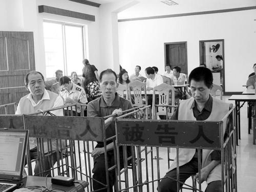 三名被告人黃和健、成錫芳、黃蘭榮(從右至左)接受審判
