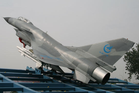 中國(guó)自主研制殲十戰(zhàn)機(jī)。圖為一航大廈前的殲十全比例模型。