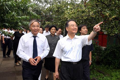 9月9日,中共中央政治局常委、國務院總理溫家寶邀請8位來自基層的中小學教師參觀北京中南海,并進行座談。這是座談會前,溫家寶在中共中央政治局委員、國務委員劉延東的陪同下,和教師們一起參觀西花廳。新華社記者 姚大偉 攝