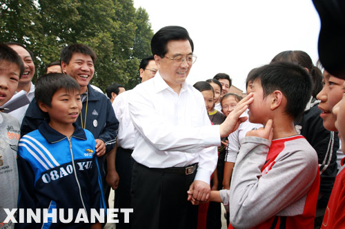 胡錦濤在焦作市博愛縣清化鎮(zhèn)高廟中學(xué)看望該校師生。 新華社記者鞠鵬攝