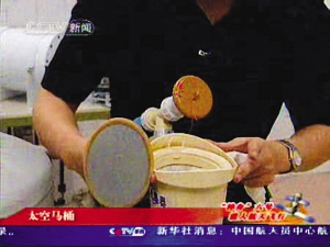 神七載人航天飛船,宇航員將首次在太空行走,也就是說要在太空艙內呆上一段時間,廁所也就成了必備之品。然而太空艙的空間狹小,如何把廁所設計得更加合理呢?施總經(jīng)理介紹,航天艙的廁所將更加小巧,而且可以伸縮,用的時候打開,不用的時候可以折疊收起來。另外,太空艙內的廁所將實現(xiàn)尿糞分離。在太空上水資源十分寶貴,宇航員的尿也不能讓它浪費,通過生物菌處理數(shù)小時后,這些尿液與飲用水無異可以繼續(xù)飲用。至于糞便,將采用真空烘干粉化的方法,最后灑向太空。