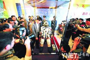 胸前貼有“翟志剛”姓名牌,左臂上一面鮮艷的五星紅旗,上月底從太空歸來的百萬造價(jià)航天服,昨天下午在重裝警備人員的護(hù)衛(wèi)下安全抵達(dá)大紅門,記者了解到,作為2008北京大紅門國際服裝節(jié)的重要展品,這件寶貝今起至20日將與市民、觀眾“親密接觸”。