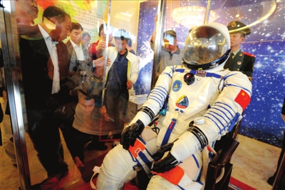 昨天,工作人員開始安裝保護(hù)“神七”航天員翟志剛艙內(nèi)航天服的玻璃罩。