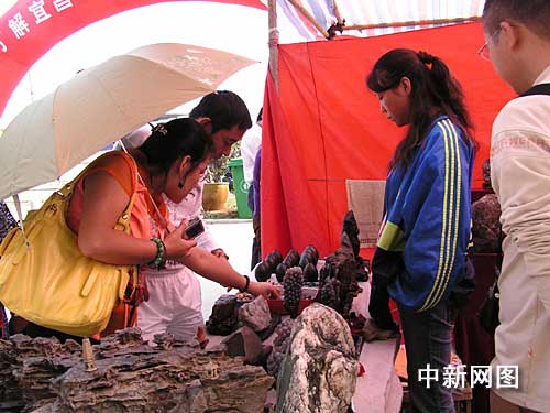 來自全國各地的數(shù)千件天然奇石亮相宜昌,圖當(dāng)?shù)厥忻衽臄z奇石 。 作 者:劉濤