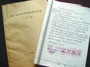 村代會(huì)一份會(huì)議記錄上印著村代表的圓章。