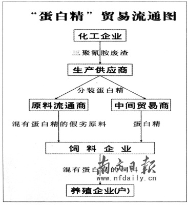 這是化工產(chǎn)品三聚氰胺在飼料行業(yè)內(nèi)非法添加的第一個(gè)曝光案例。一位業(yè)內(nèi)人士透露,早在2004年,該公司就開始生產(chǎn)“生物蛋白精”,并在網(wǎng)上公開求購(gòu)三聚氰胺廢料。