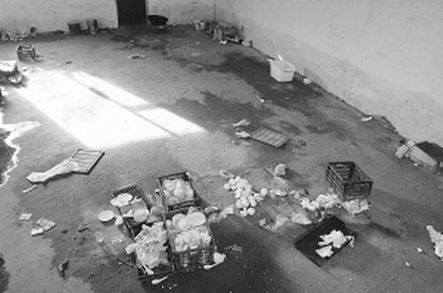 9月9日,記者第二次來到這家餐具消毒廠,記者看到,消毒廠里沒有任何消毒設備,用的都是地下水,室內(nèi)的水泥地上到處是積水,里面泡著碎骨頭和爛菜葉,有蛆蟲來回爬行,還有許多蒼蠅飛來飛去,塑封好的餐具放在整理箱內(nèi)。