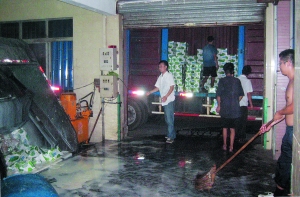 前天晚上7時許,位于廣州石井潭村附近的垃圾壓縮站內(nèi),先后兩輛大貨車將數(shù)百箱不合格盒裝牛奶運(yùn)送到此然后集中進(jìn)行銷毀。大量液態(tài)奶在這一過程中被直接排放到附近的石井涌內(nèi),附近居民表示因?yàn)樘鞜崤D贪l(fā)酵導(dǎo)致臭氣沖天。昨日,記者再次來到該垃圾壓縮站,已經(jīng)有當(dāng)?shù)卣块T工作人員趕到現(xiàn)場清理,并未有再次銷毀牛奶情況出現(xiàn)。